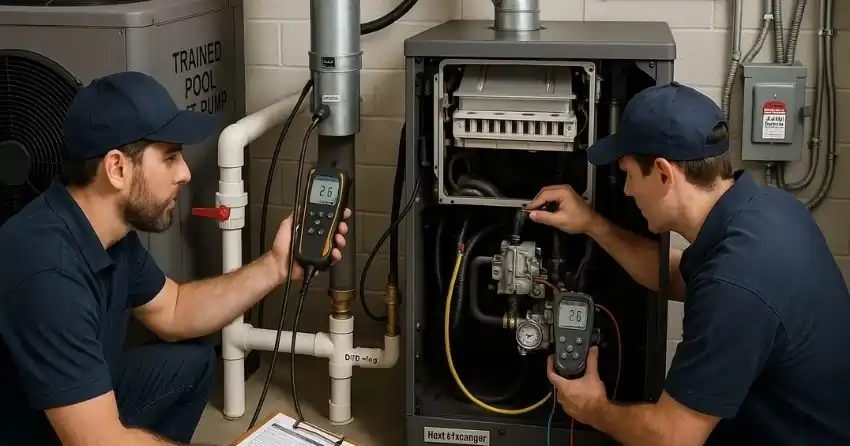 Pool heater repair problems in Halton Hills? HVAC Halton Hills finds the cause, replaces igniters, sensors, gas valves, control boards, and heat exchangers, clears scale, and confirms operation so the water warms up without unnecessary upsells.
